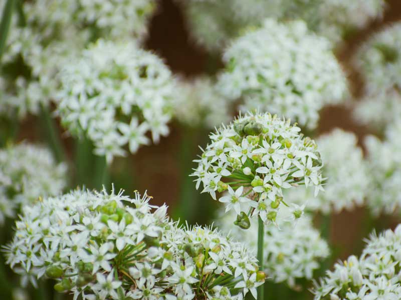 Garlic chives make a striking edging plant and pair well with other herbs in cottage or vegetable gardens. Their strong scent can help deter aphids, carrot flies, and other pests.